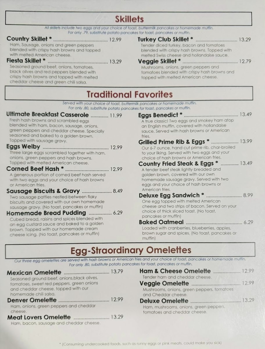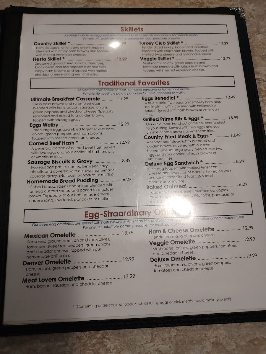 Breakfast is a key focus here, with choices ranging from Cinnamon Roll Pancakes and Eggs Benedict served with hashbrowns, to satisfying skillets like the Fiesta Skillet or Country Skillet. There’s a good mix of traditional items such as Oatmeal and Corned Beef Hash alongside more distinctive treats like Pumpkin Swirl Pancakes topped with icing. The dining experience reflects the ease and comfort of a simple café, where familiar flavors and generous portions contribute to a relaxed pace and a sense of home.